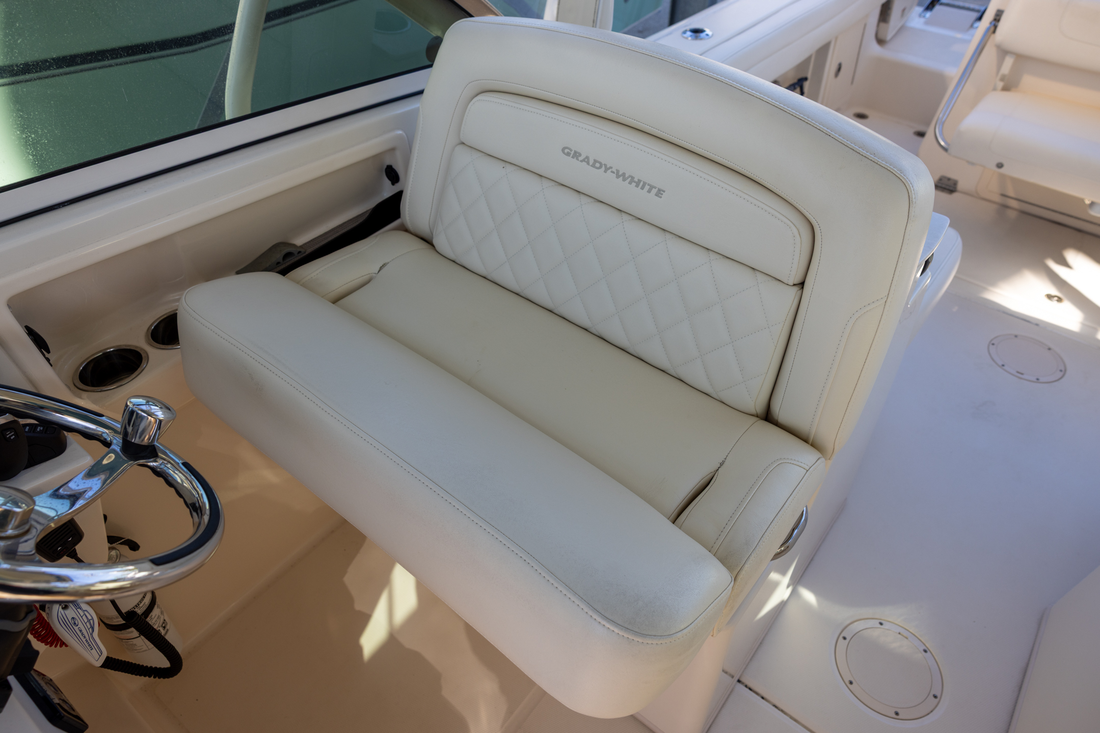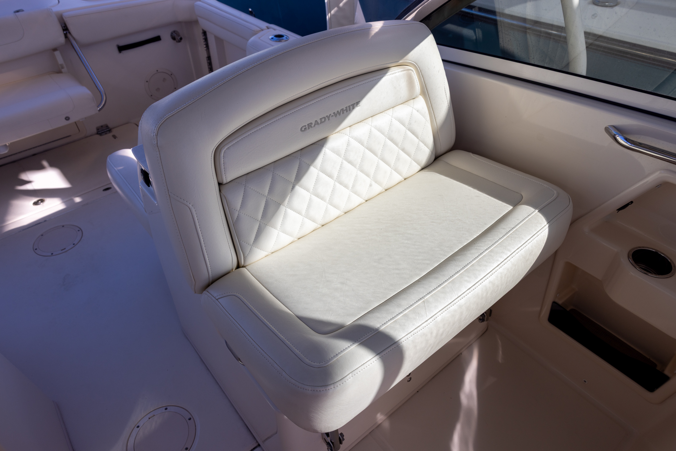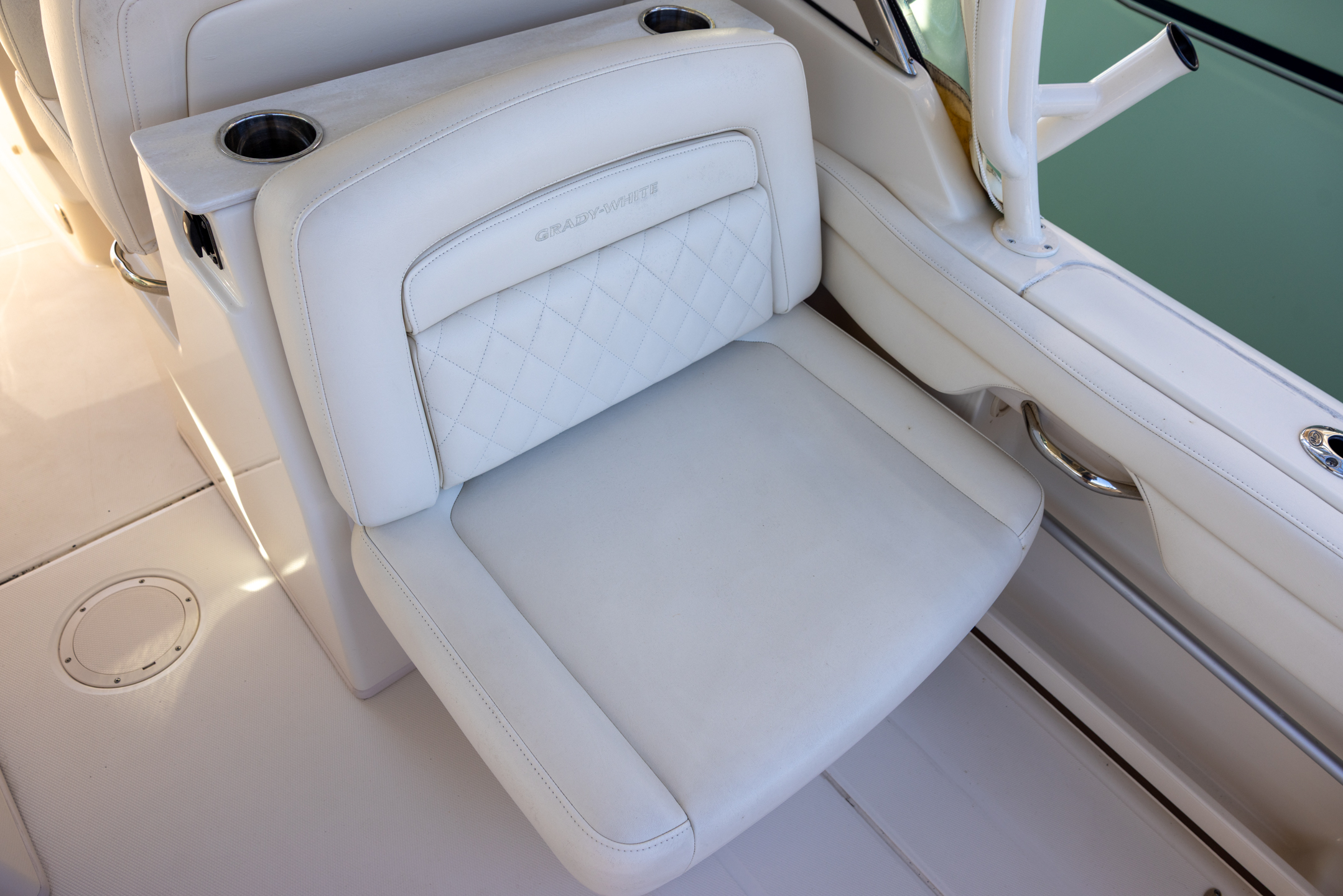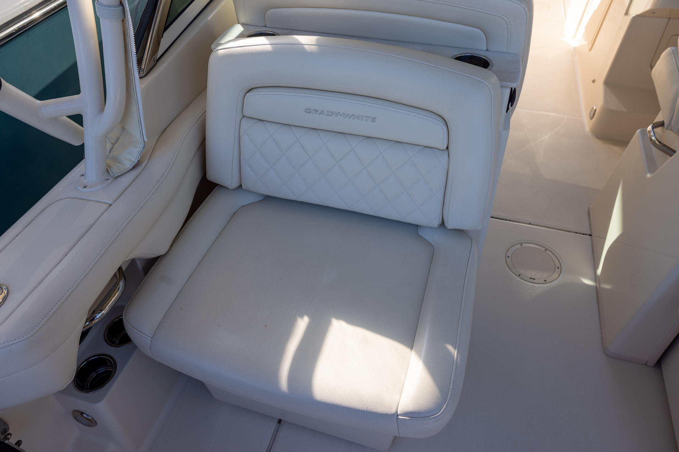 - Deluxe electromechanically adjustable helm seating w/electromechanically extendable aft lounge seat & CorianĀ® countertop
