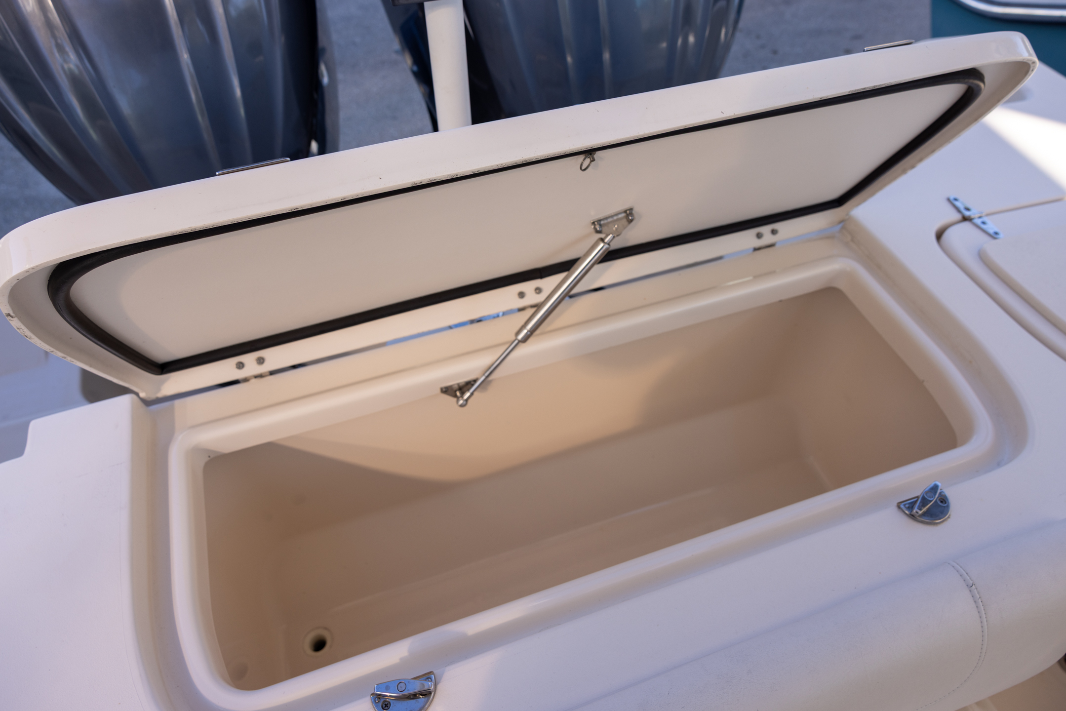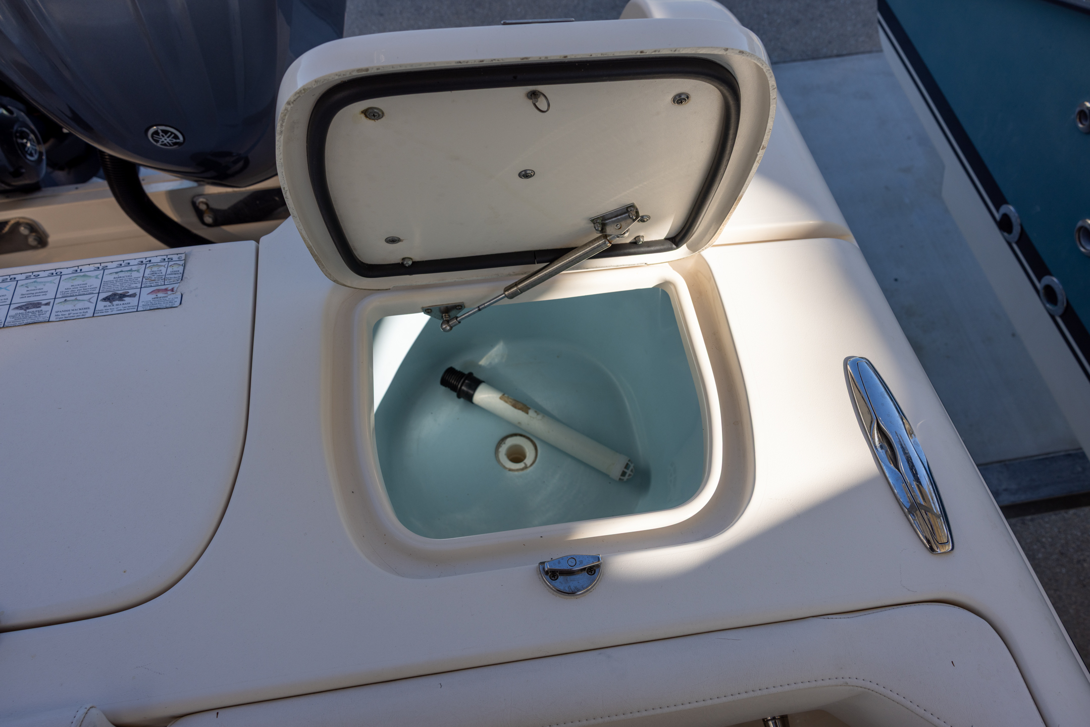 - 32-gallon aft insulated raw water livewell w/light, full column distribution inlet & ob drain