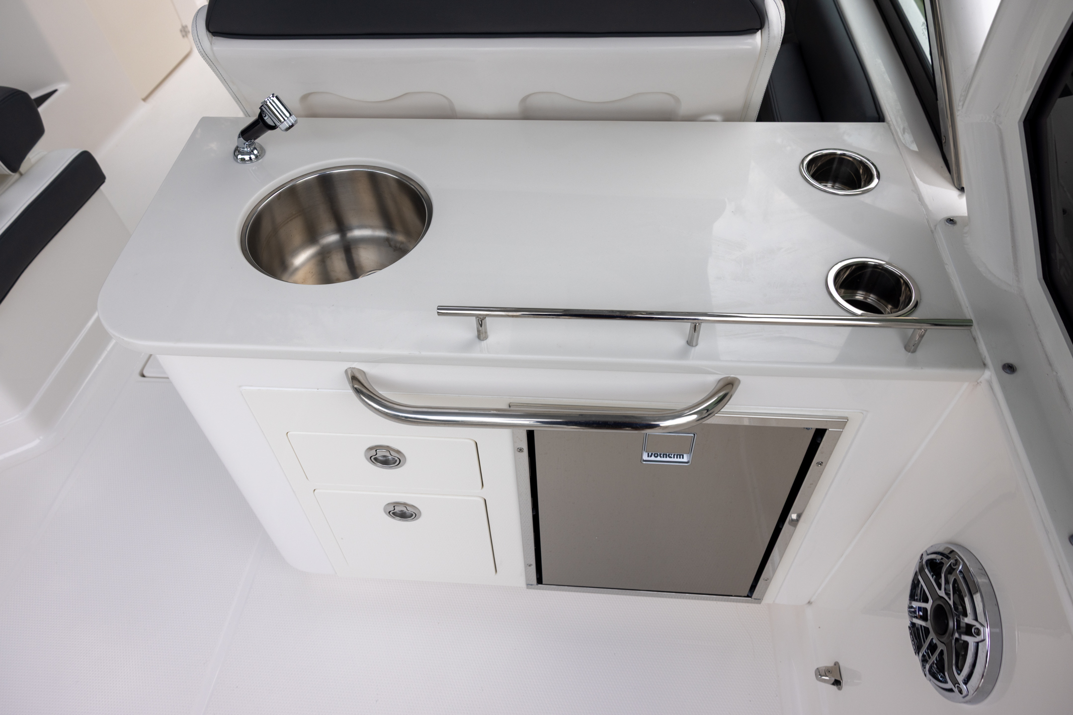 - Connectivity Package - Includes Port Helm Simrad NSX9, Port and Stbd Helm Hot to Cold Cupholders, and Wireless Phone Charger $4,655