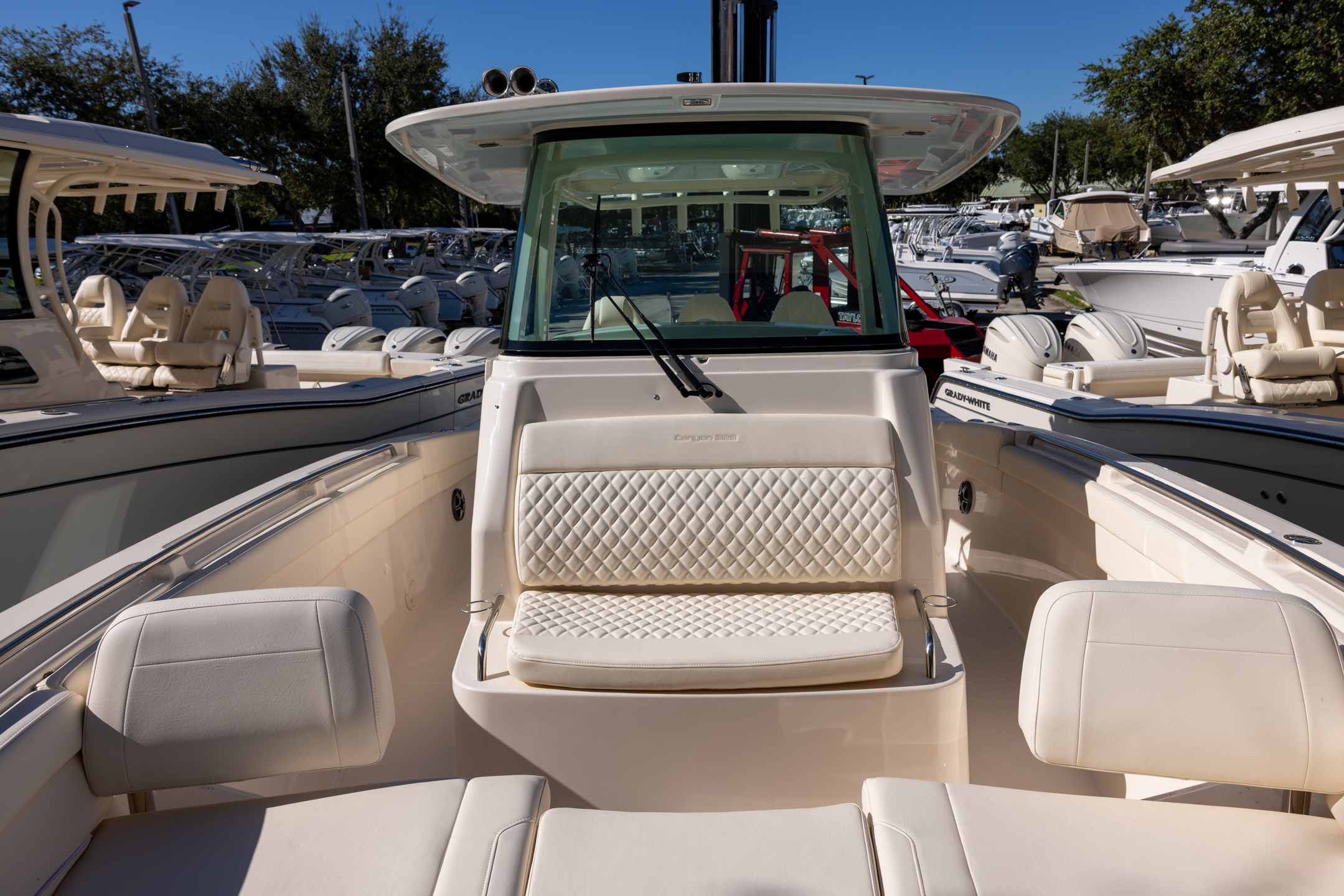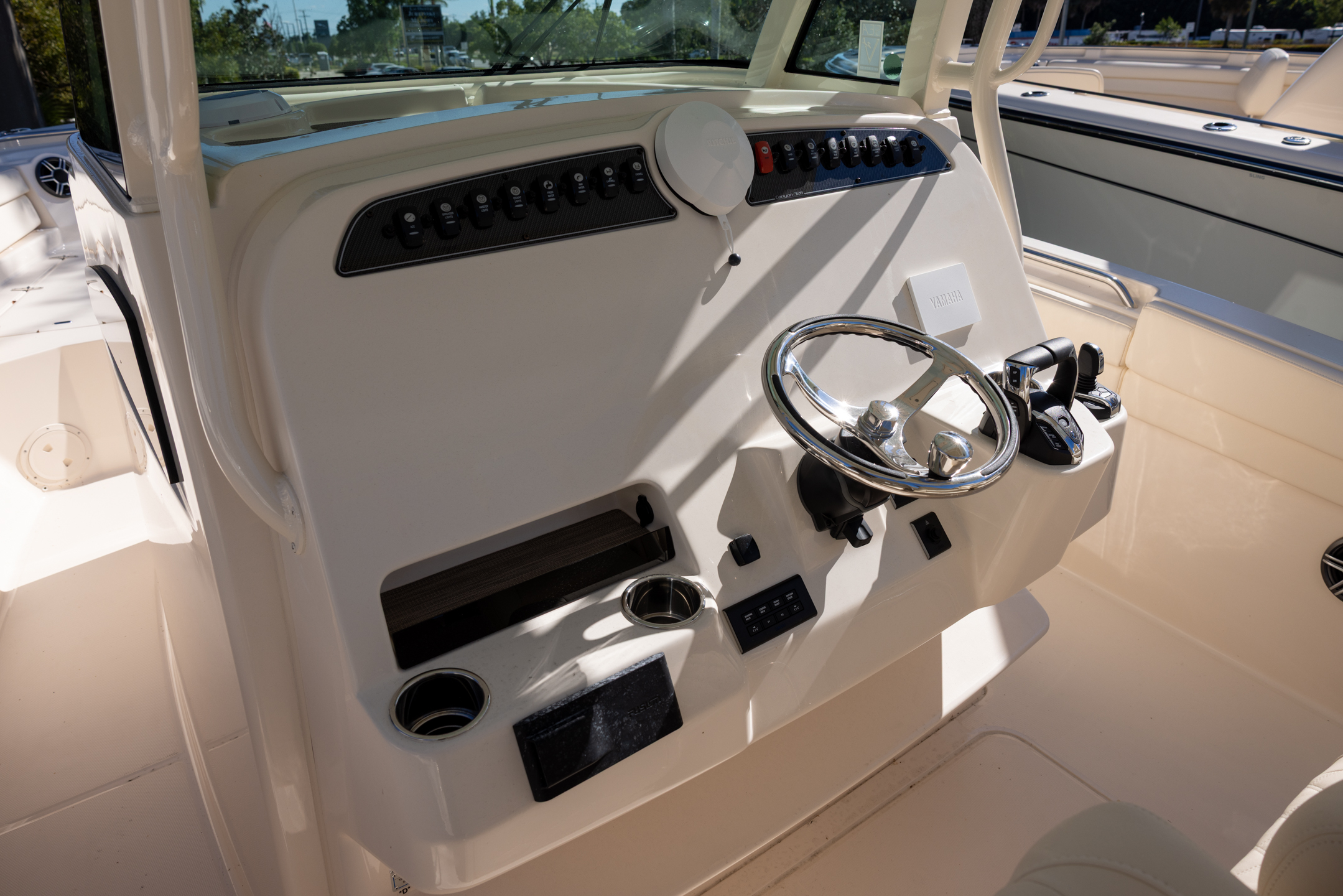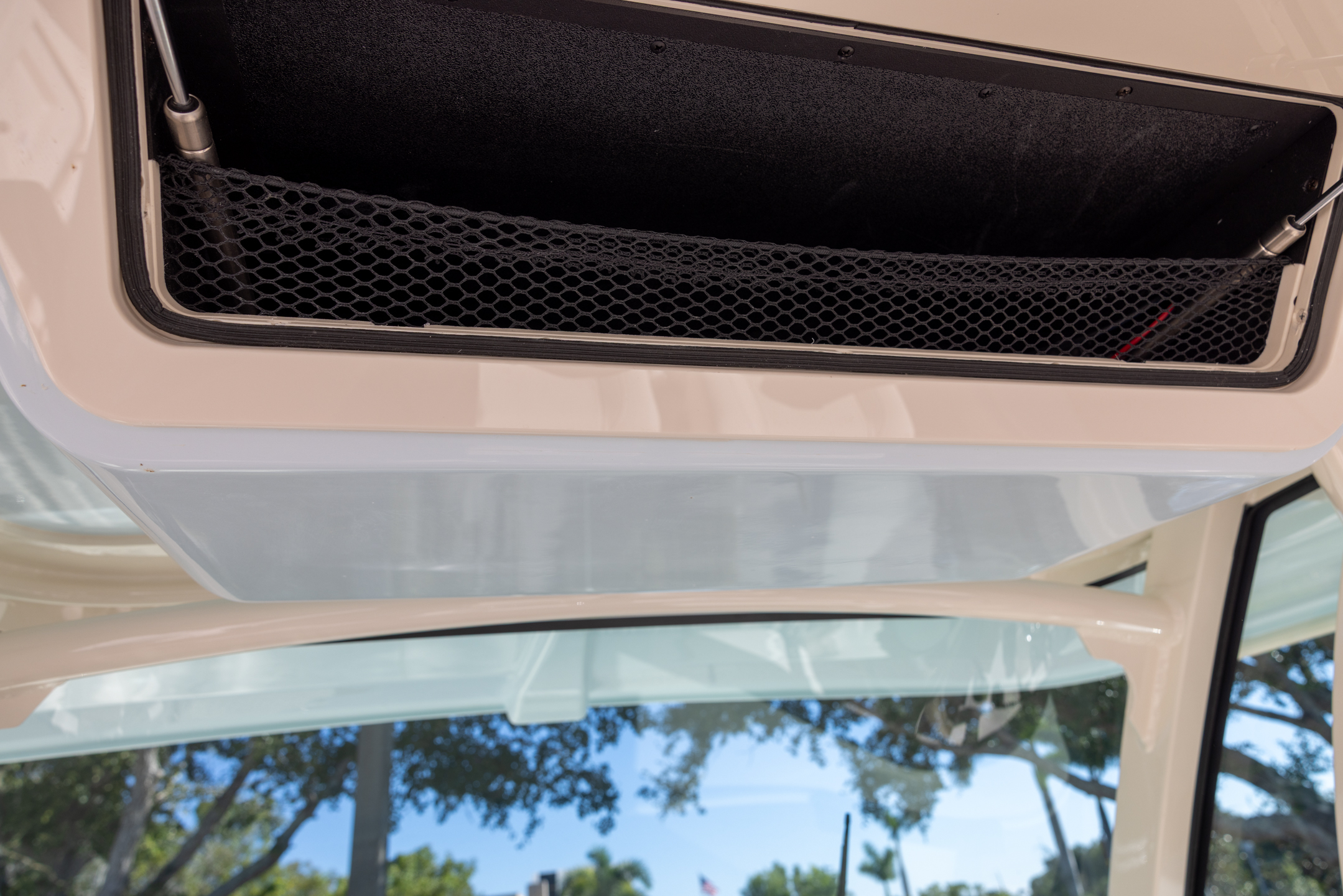 - SureShade® electrically retractable cockpit shade with Sunbrella® canvas (oyster)
