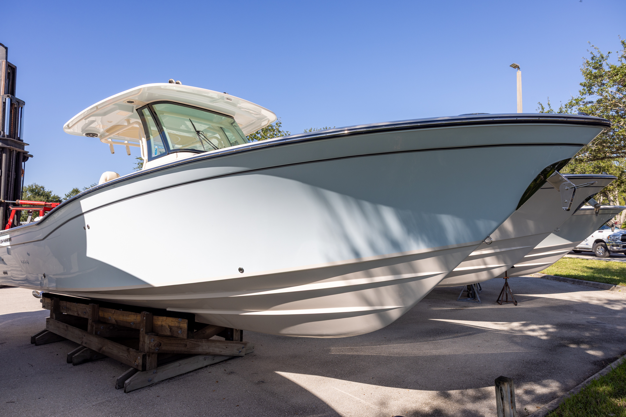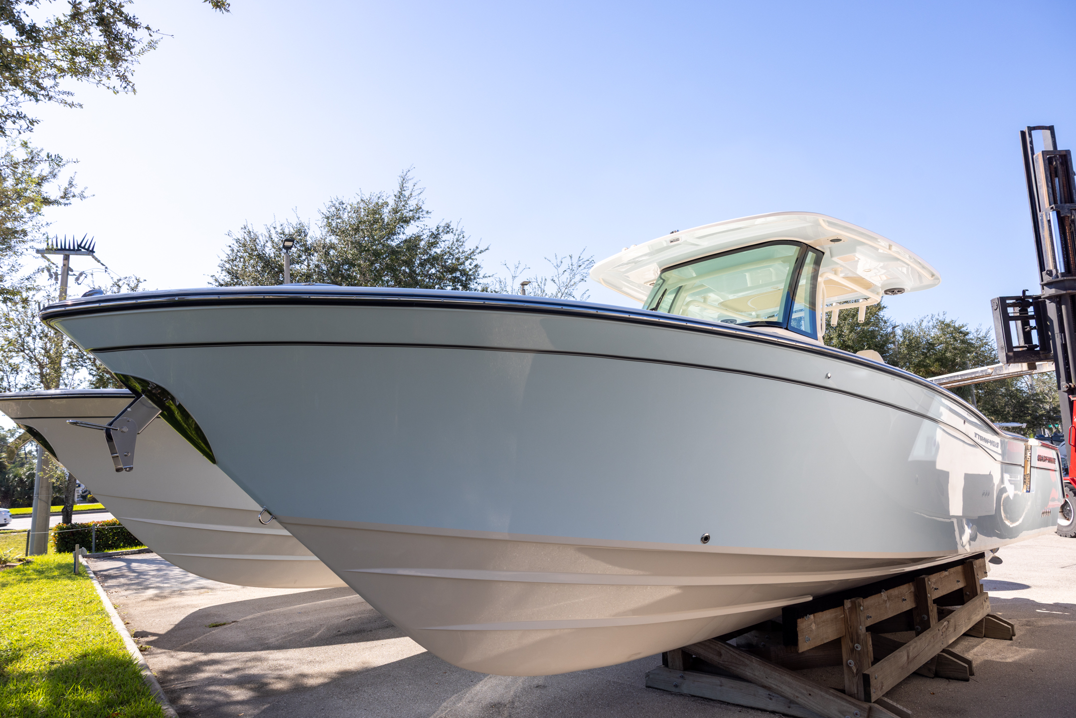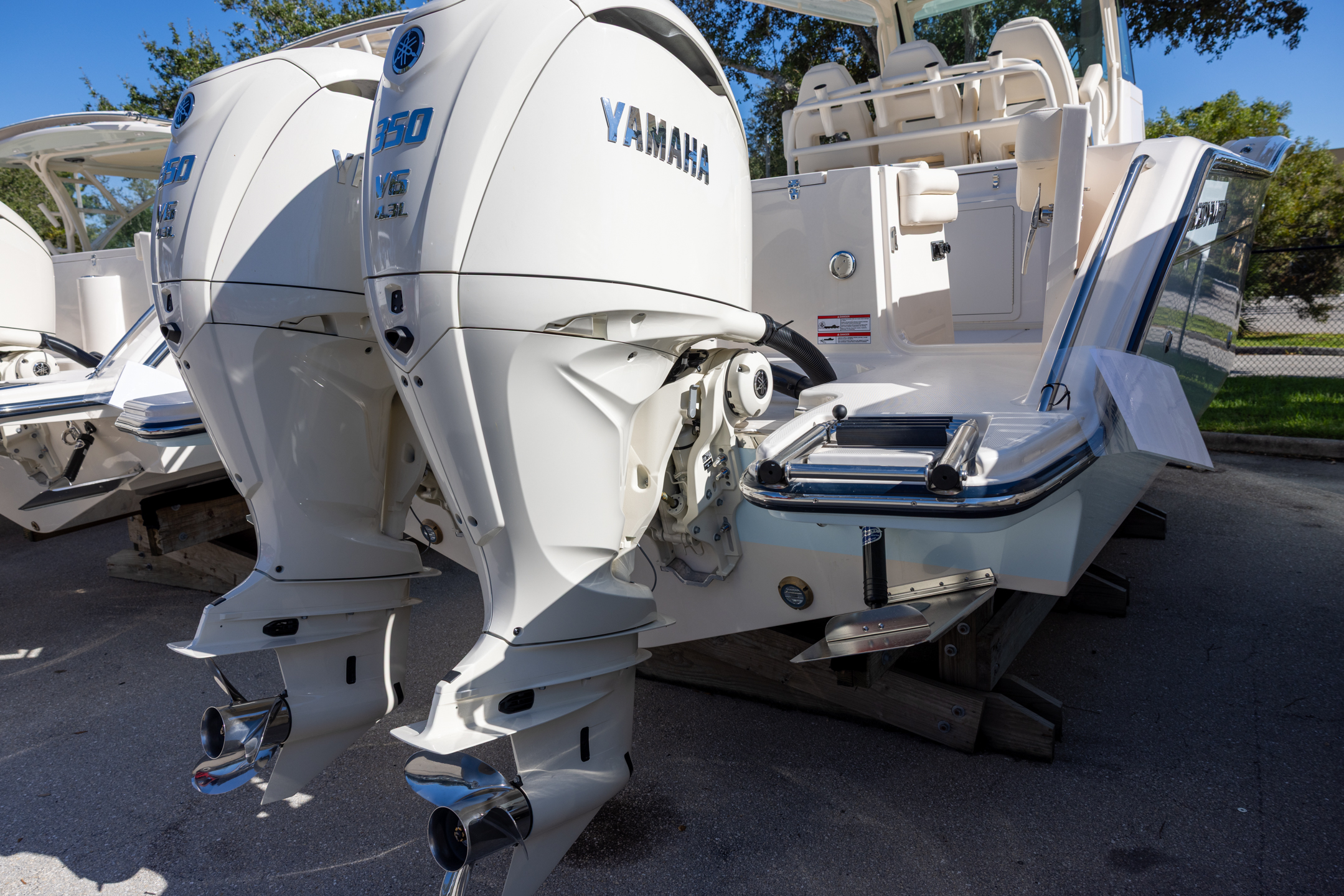 - SureShade® electrically retractable cockpit shade with Sunbrella® canvas (oyster)