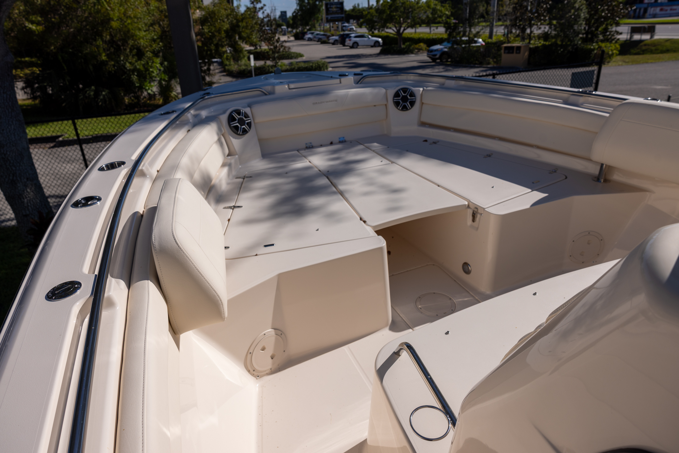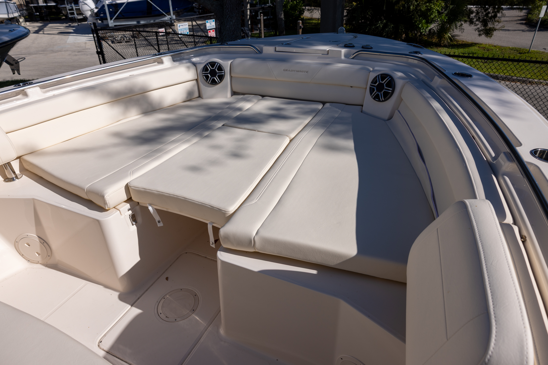 - Port & starboard bow seating w/forward facing foldaway bolstered backrest