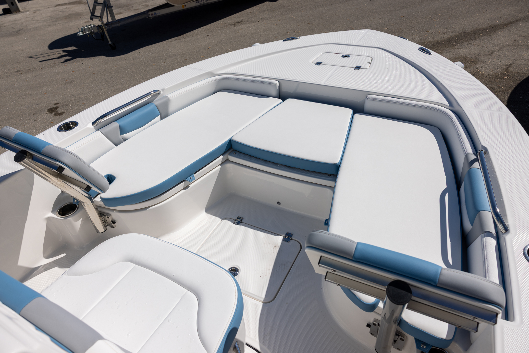 - Bow Rider U-Shaped Seating with Bolsters and Lockable Rod Storage Underneath