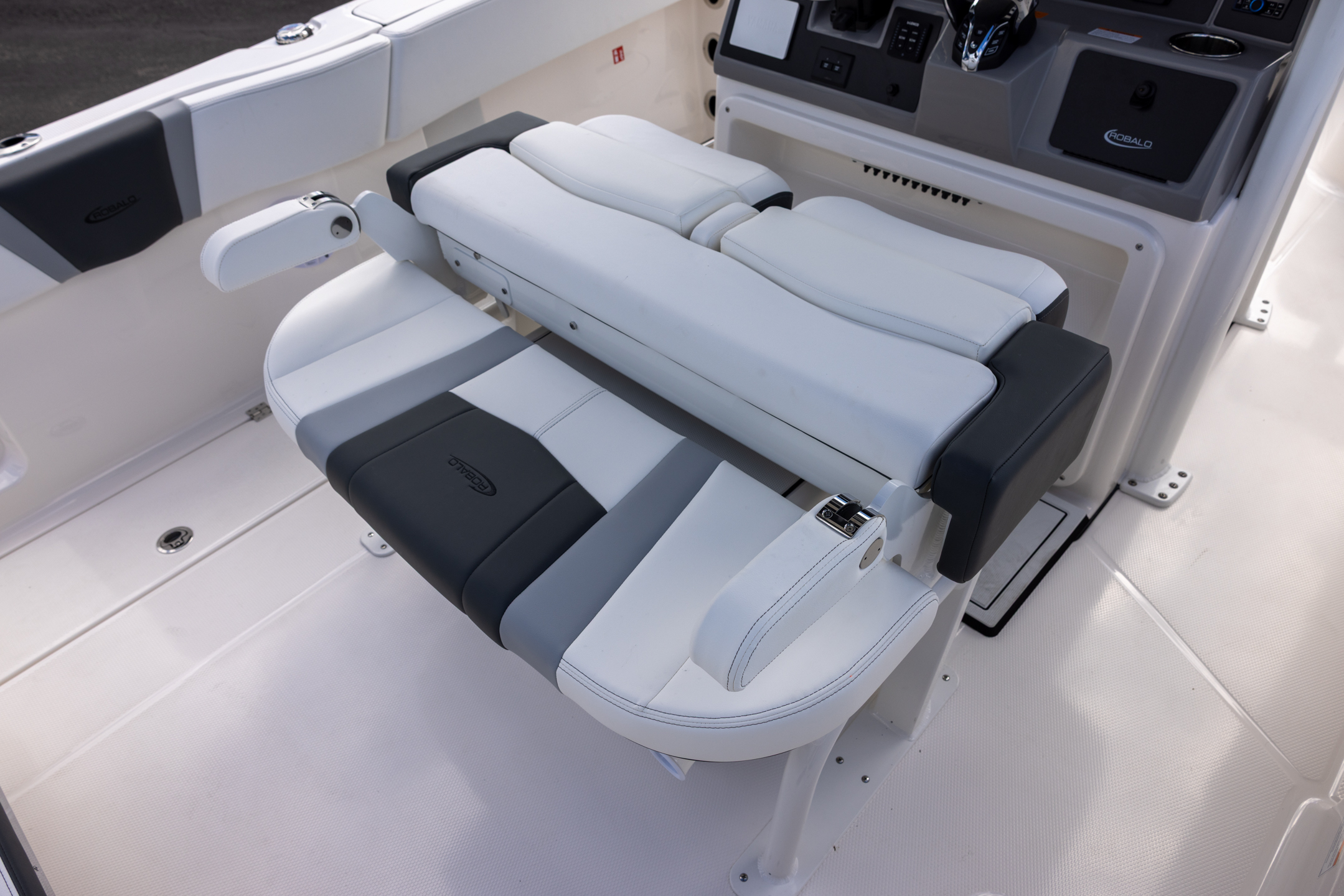 - Deluxe Leaning Post with Dual flip uo Bolsters, Backrest, Rod Holders (4), Stainless Steel Drink Holders (2), Tool Holders with Teak Panel, and 50 Liter Cooler.