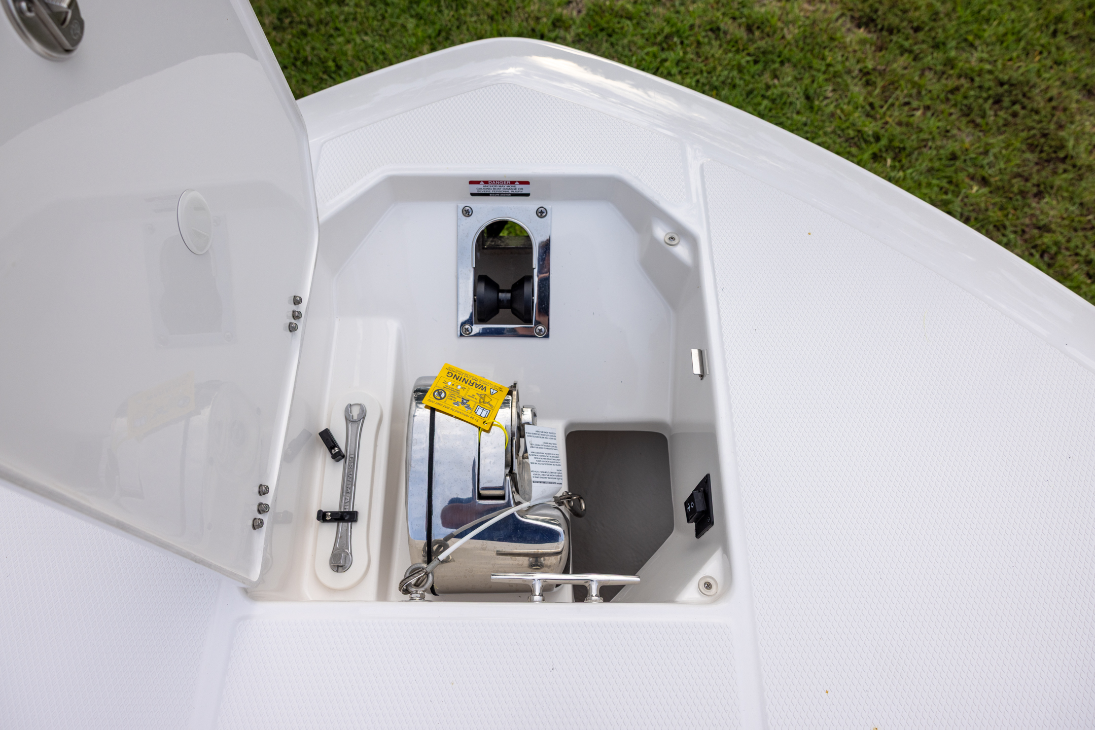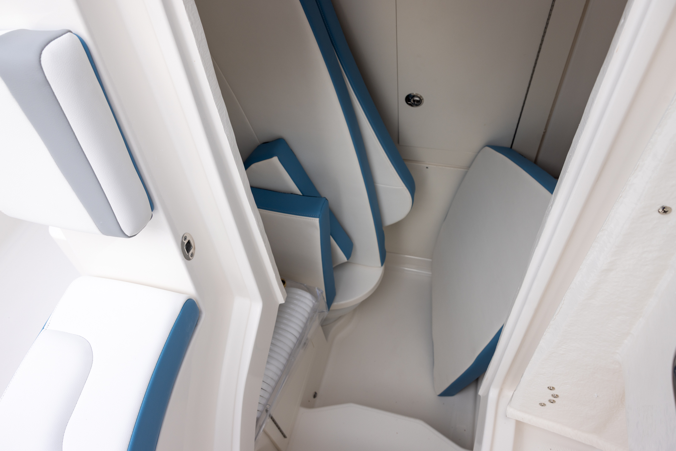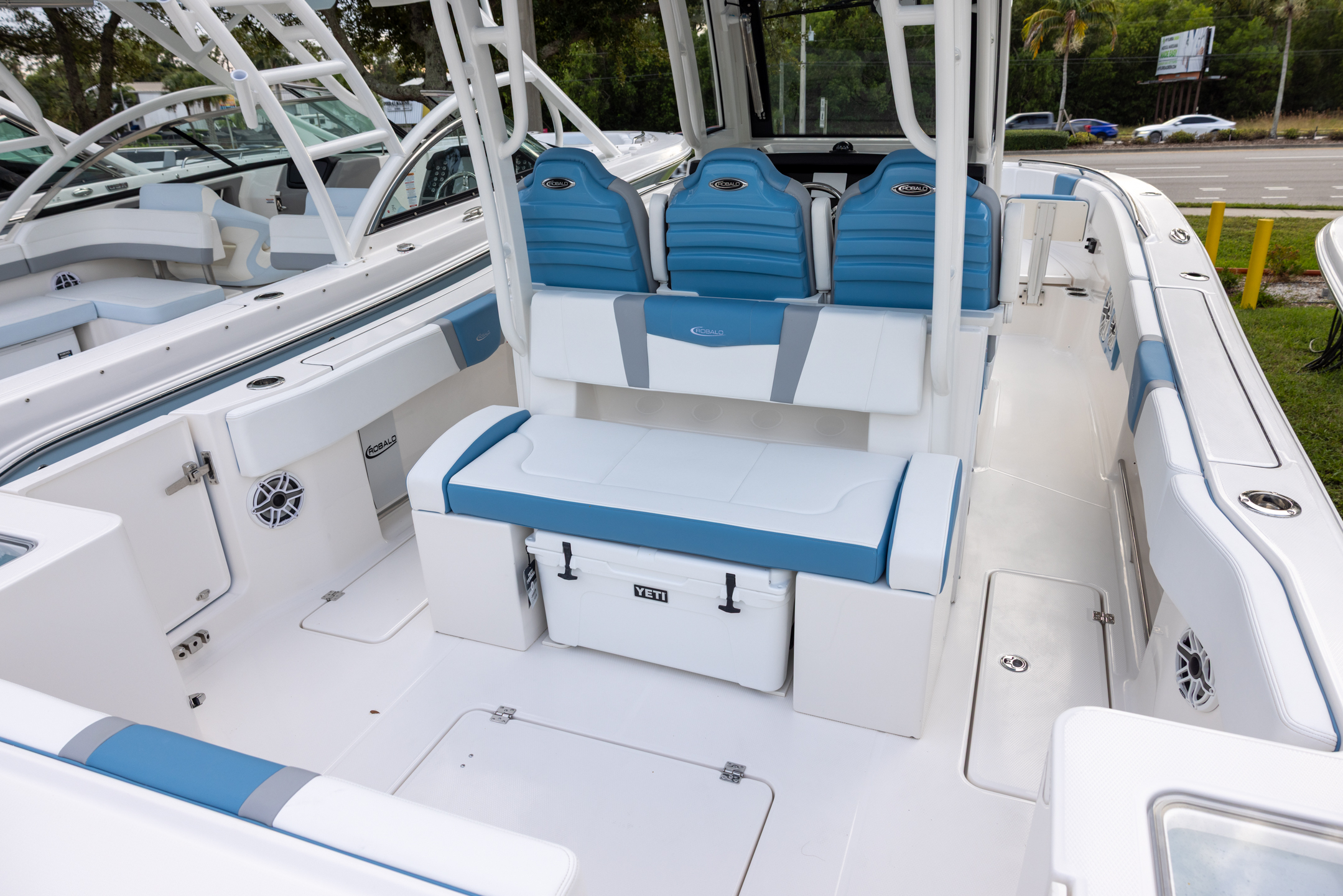 - Triple Forward Facing Helm Seats w/ Flip-Up Bolsters and Fold Down Armrests (Includes Center Seat Electric Forward/Aft Control)