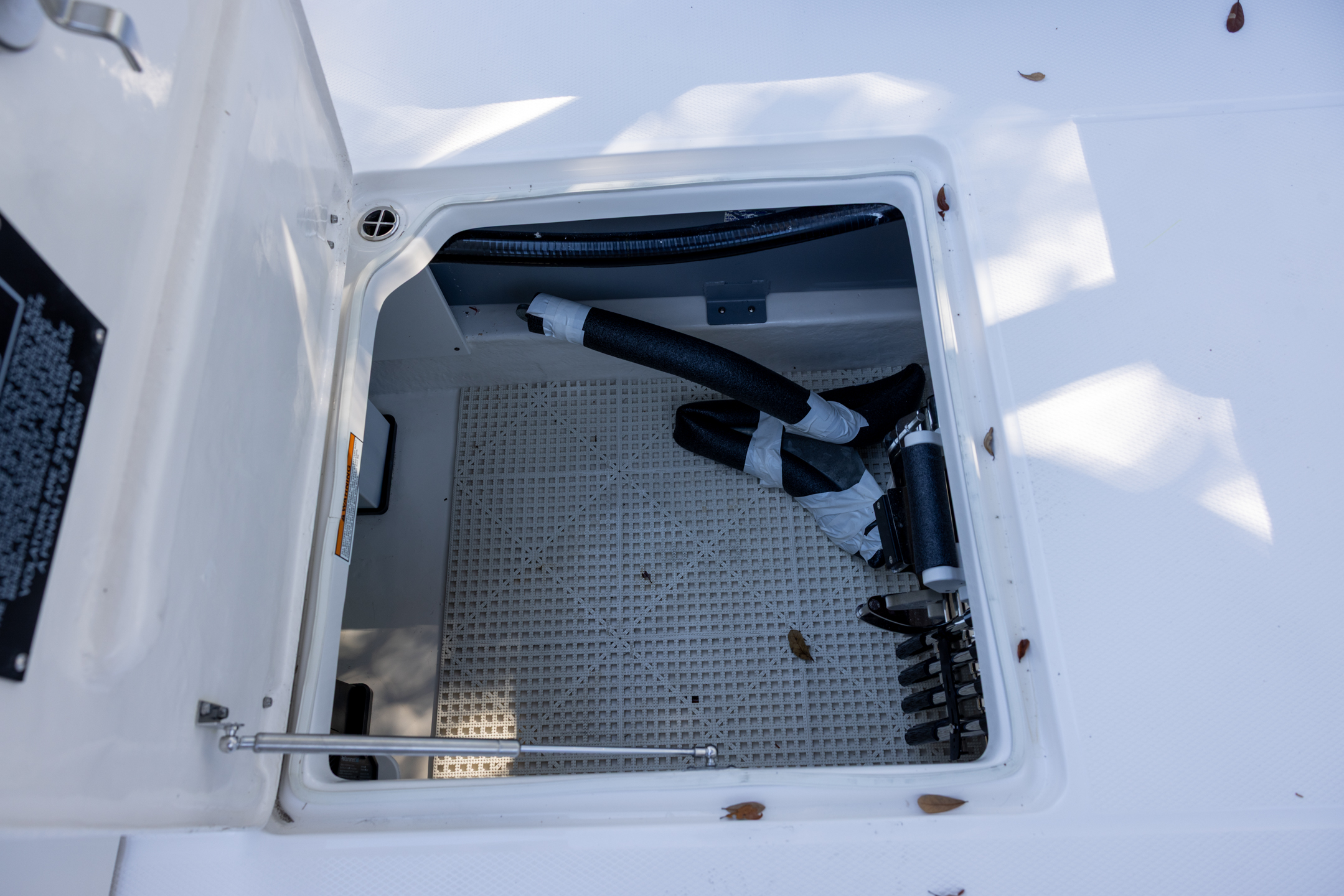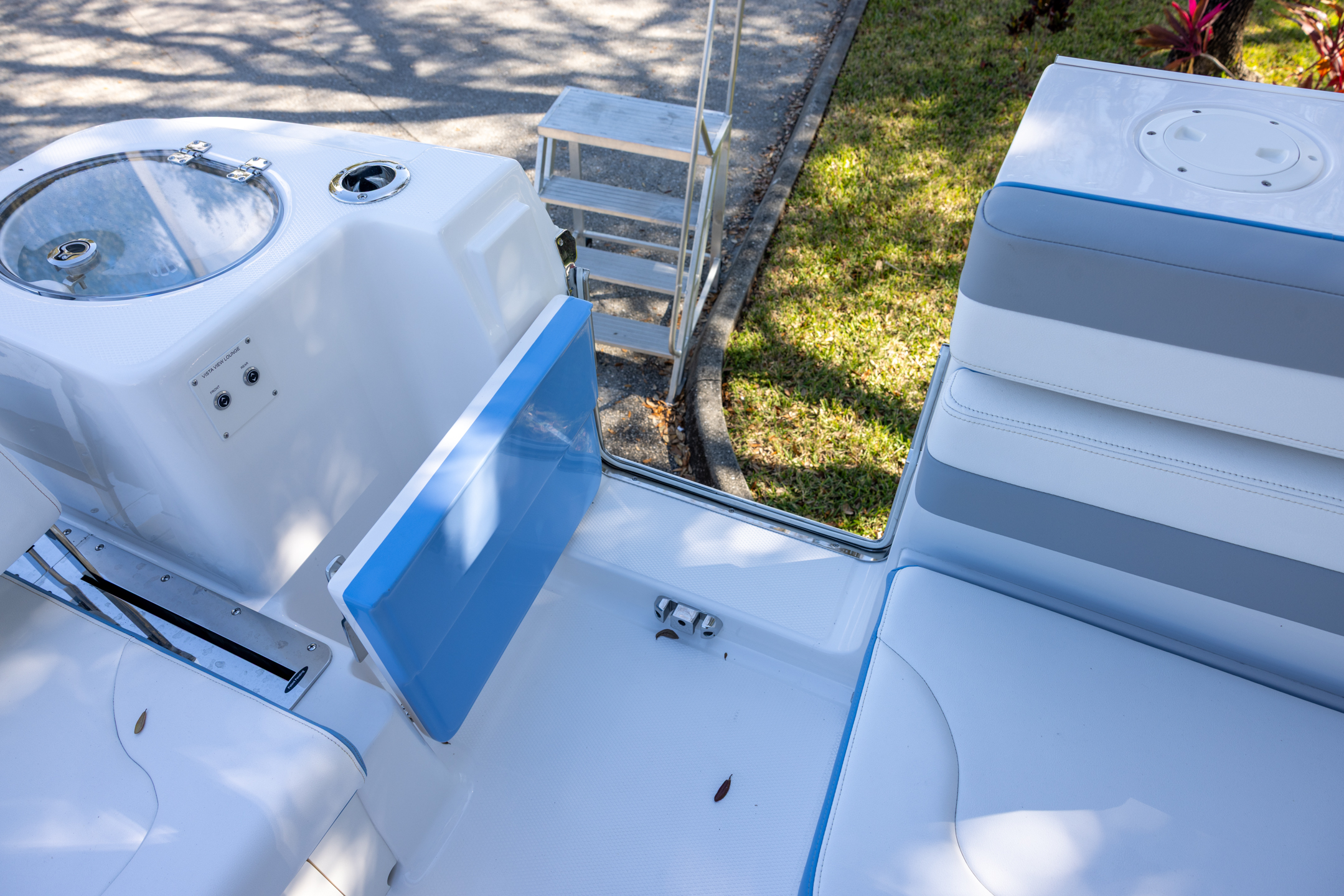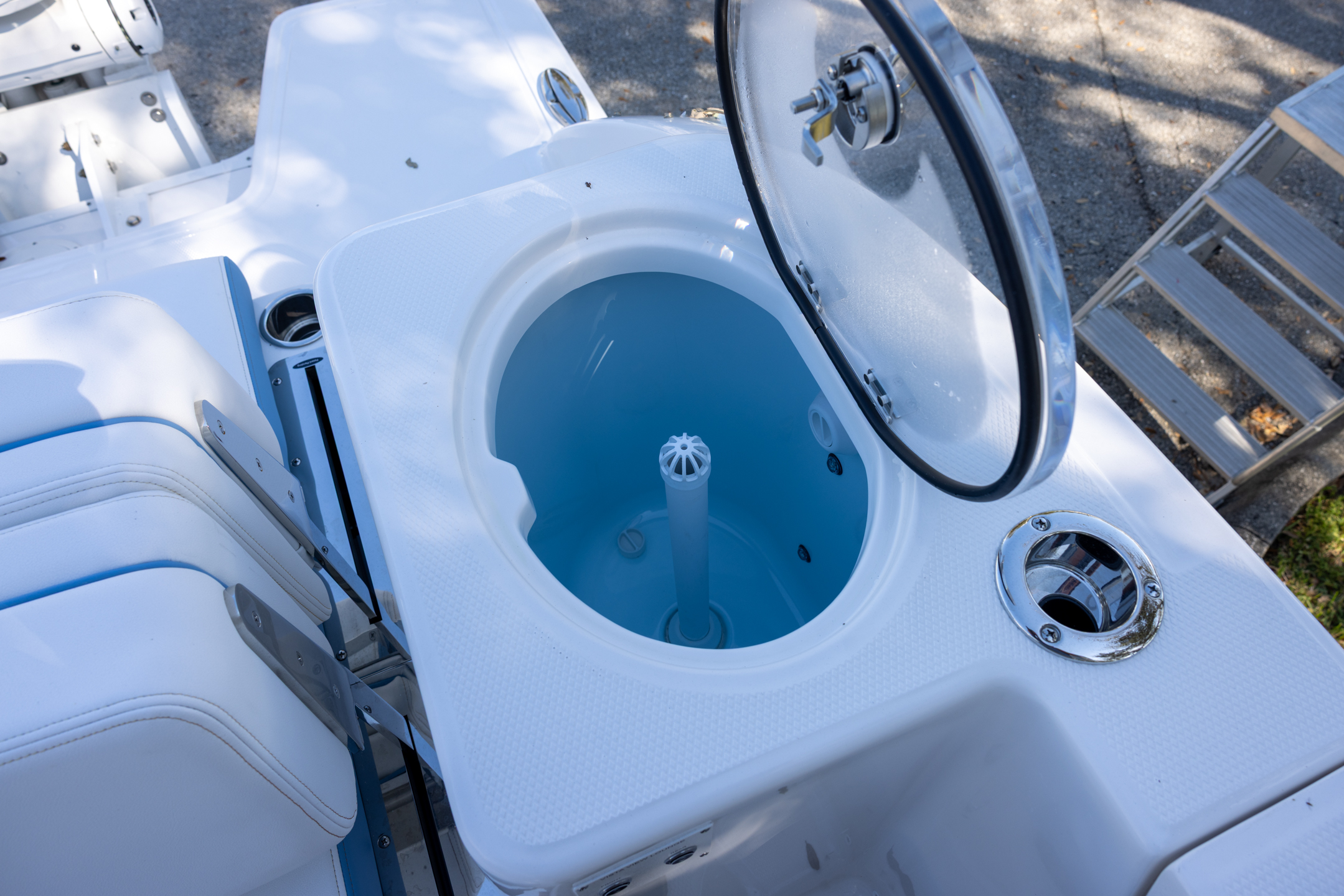 - Aft Port Insulated Livewell (25 gallons) with Specific Livewell Pump, LED lighting, Blue Gelcoat Finish with Adjustable Flow Valve