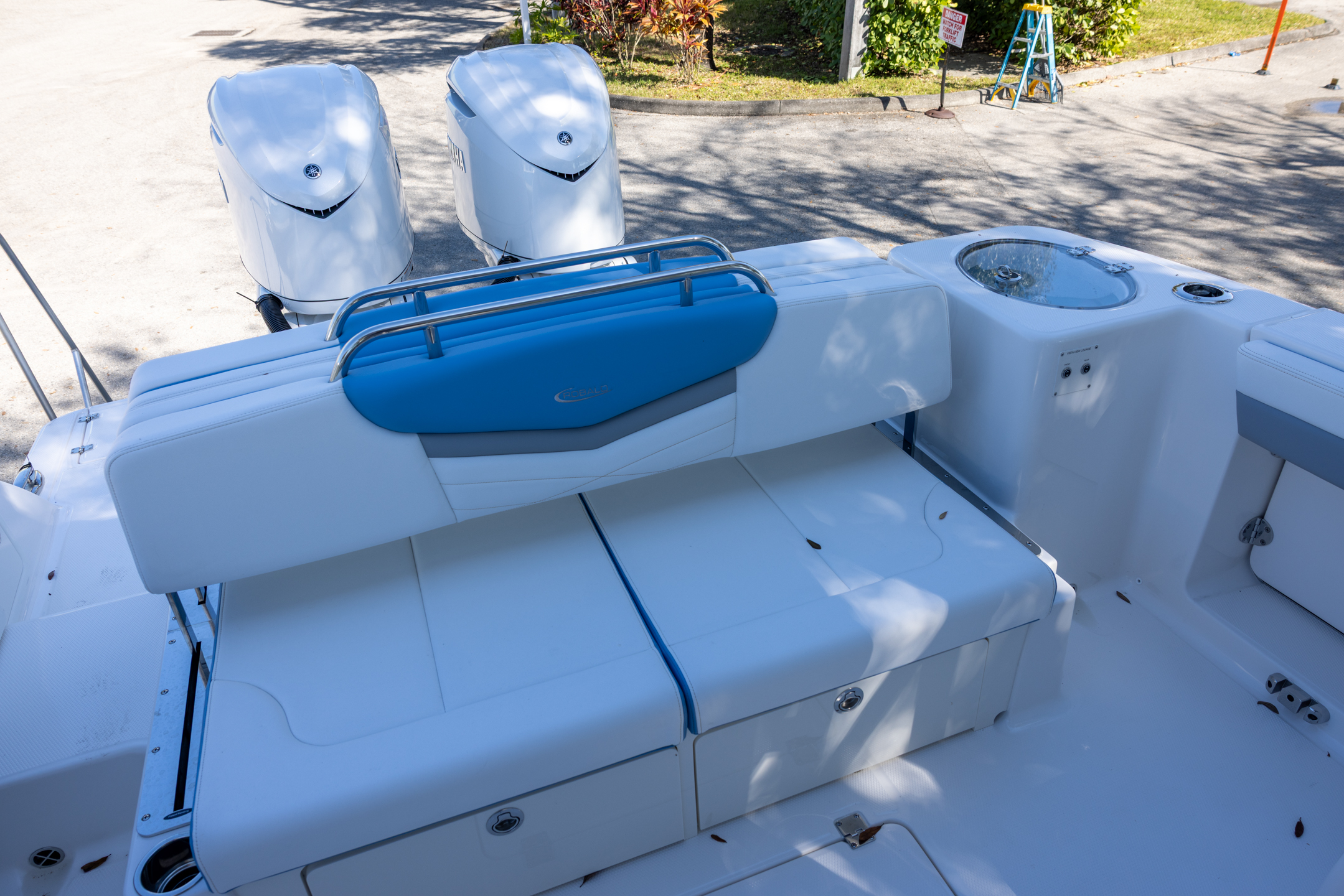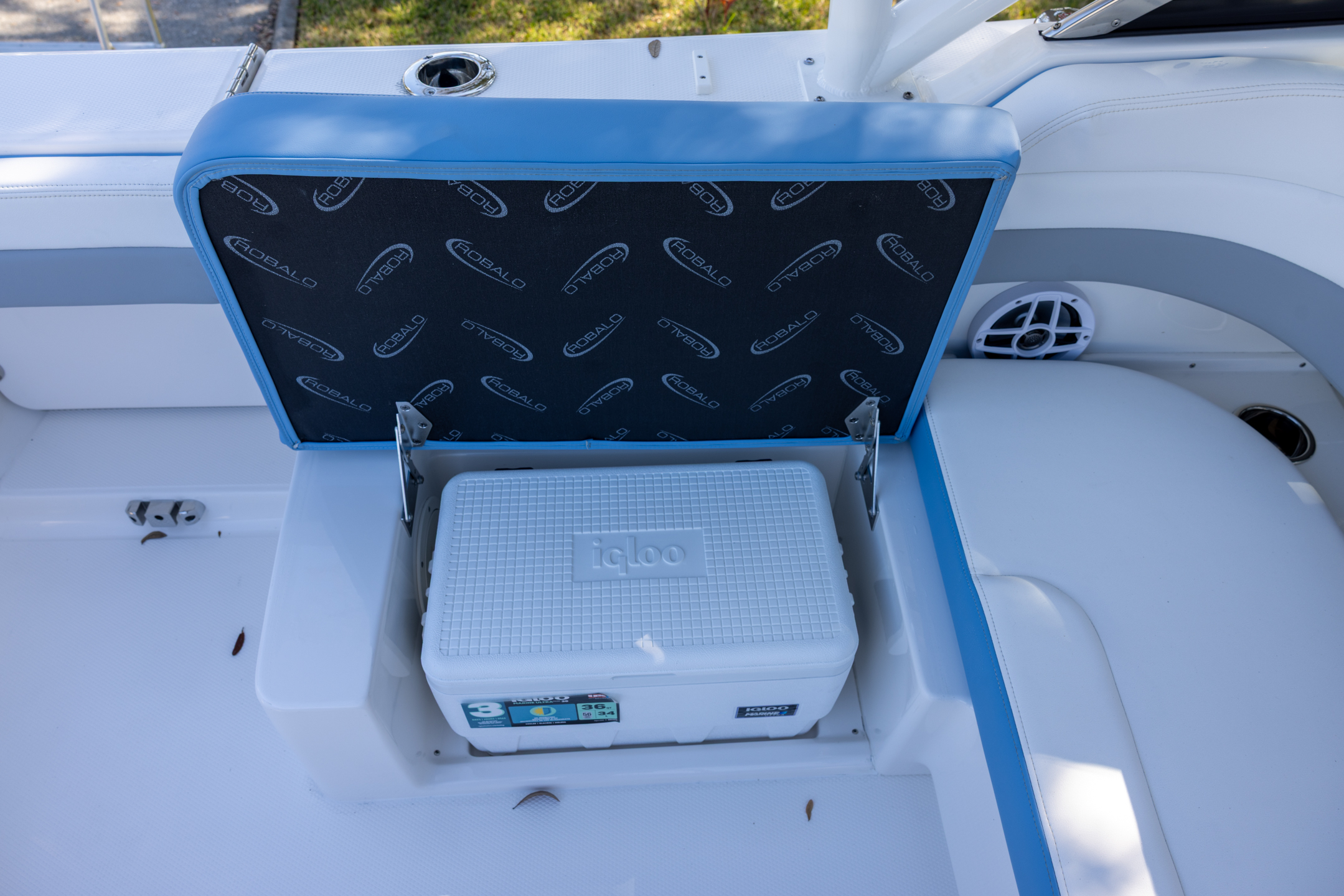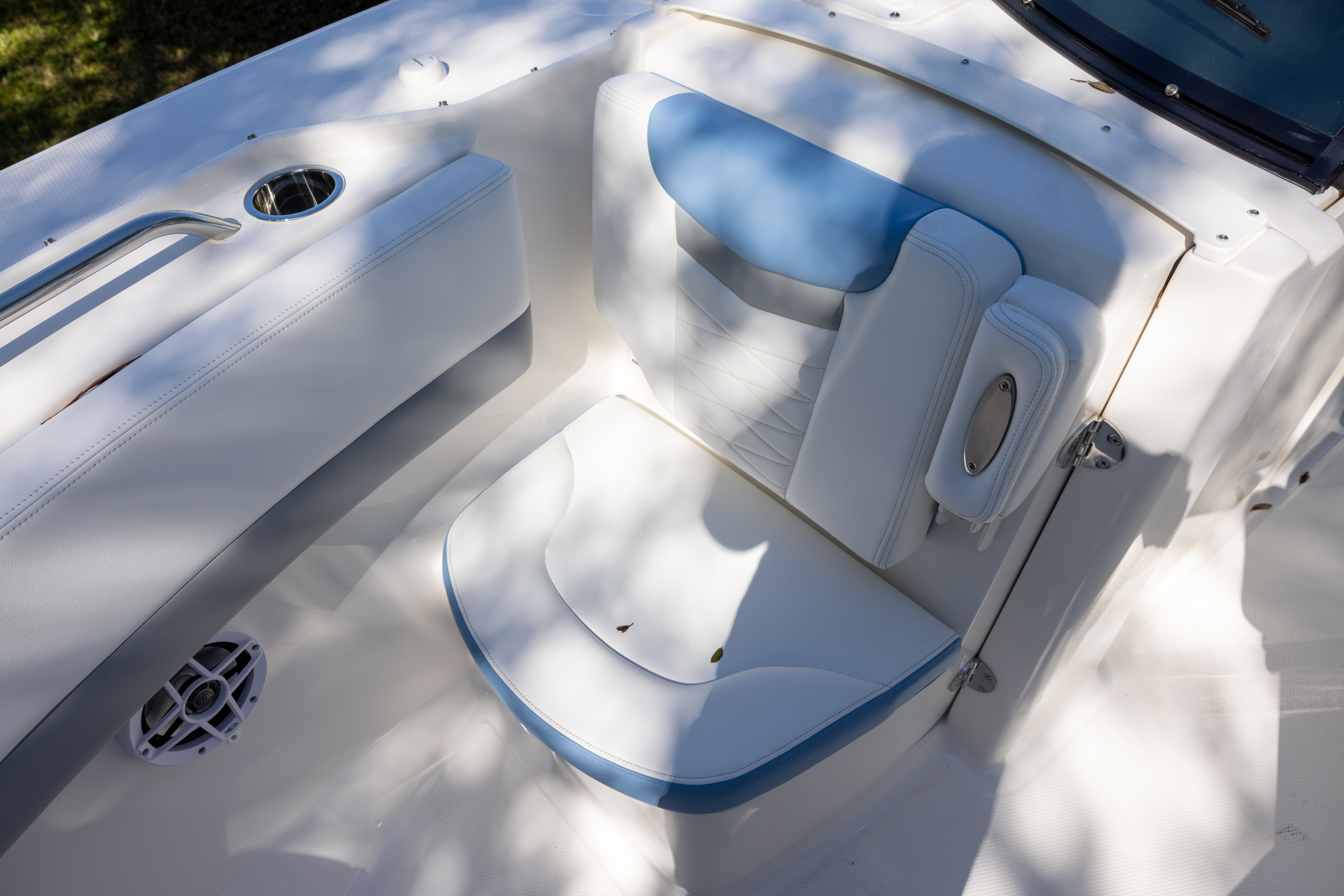 - Aft Port Insulated Livewell (25 gallons) with Specific Livewell Pump, LED lighting, Blue Gelcoat Finish with Adjustable Flow Valve