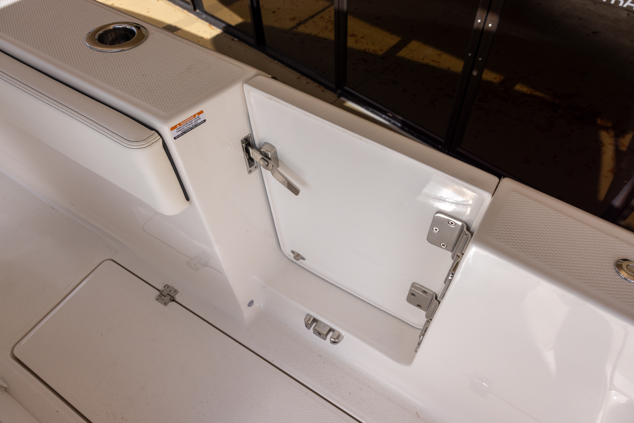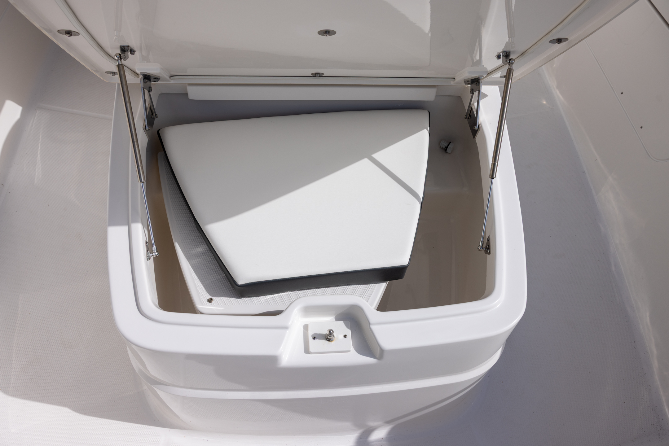 - Large Port and Starboard Side Rod Storage Compartments with Lockable Fiberglass Lids
