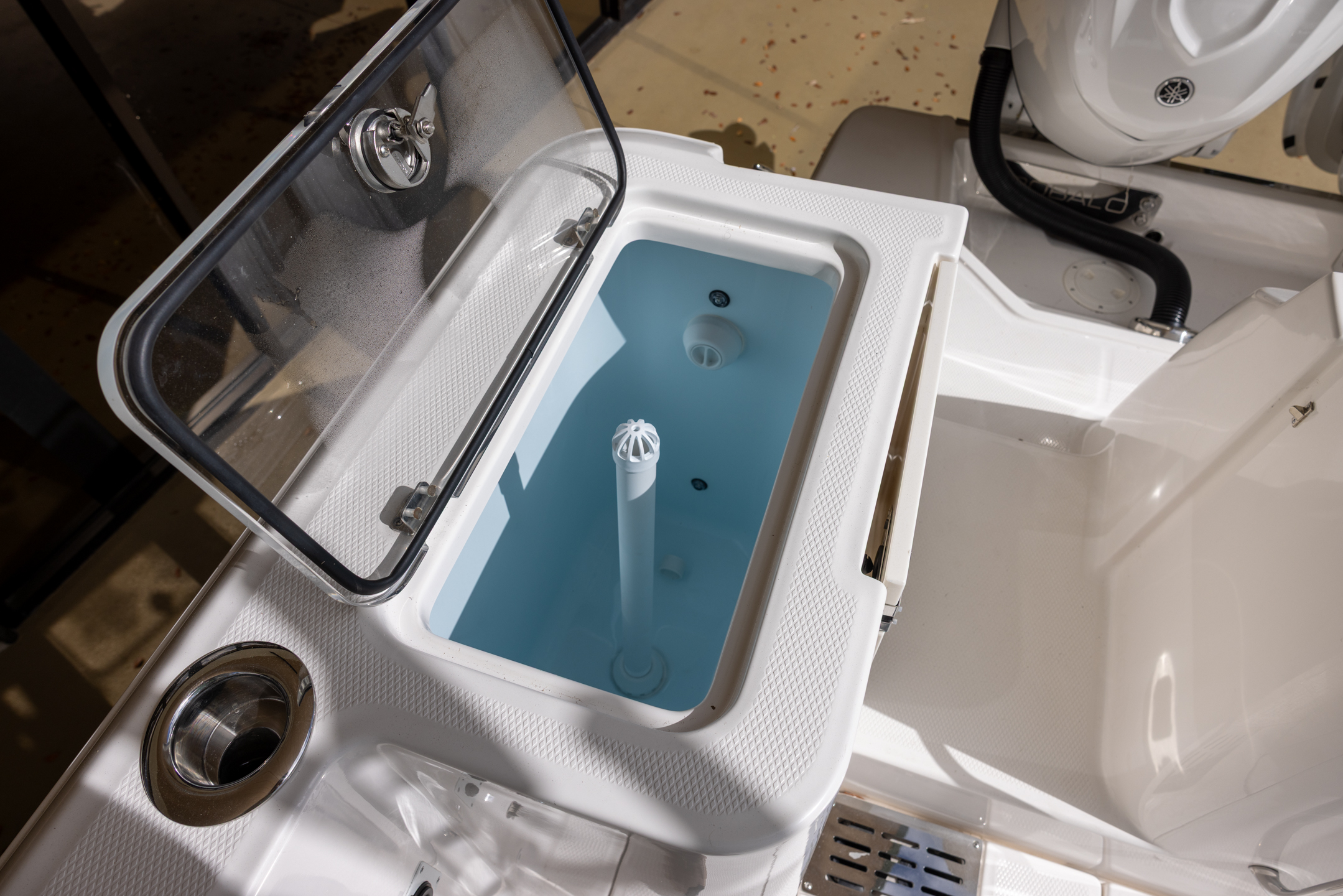 - Twin Aft Insulated Livewells (30 gallons) with Specific Livewell Pumps, LED lighting, BlueĀ Gelcoat Finish, Adjustable Flow Valves and Clear Plexiglass Lid